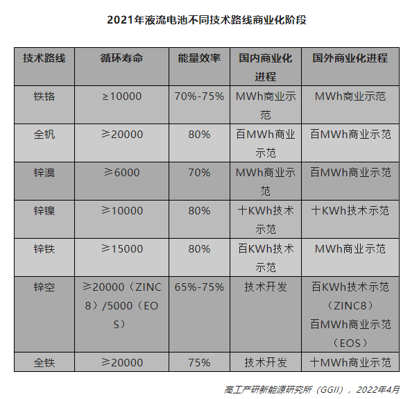 液流電池根據電解液體系的不同,具體可劃分為全釩、鋅溴、鐵鉻、鋅鐵等技術路線。