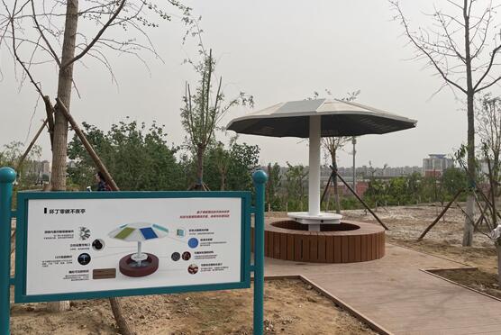 昊天碳中和公園已于2022年4月正式對公眾開放。走進碳中和公園低碳設計理念可以說是隨處可見,公園建設別具巧思。比如零碳不夜亭,把手機放在亭子的桌面上可以立即無線充電,而電的來源正是來自亭子頂部的太陽能光伏板,亭子所使用的材料都是可以循環利用的。公園里的路燈都是由太陽能發電,停車場旁邊就是光伏陣列,公園道路均使用低碳再生建材。這些設計體現出整個公園的碳中和理念。現在,公園不僅是附近居民最愛來的打卡地,也已成為了踐行碳中和理念的生動實踐。據了解,公園建設遵循施工零廢棄物、運營零廢棄物、利用可再生能源、用電“光儲直柔”、消耗近零新水五大低碳設計理念,預計能夠減少公園全生命周期70%的碳排放量。公園實現了近零碳排放運營,種植的樹木年均可吸收二氧化碳近50噸。