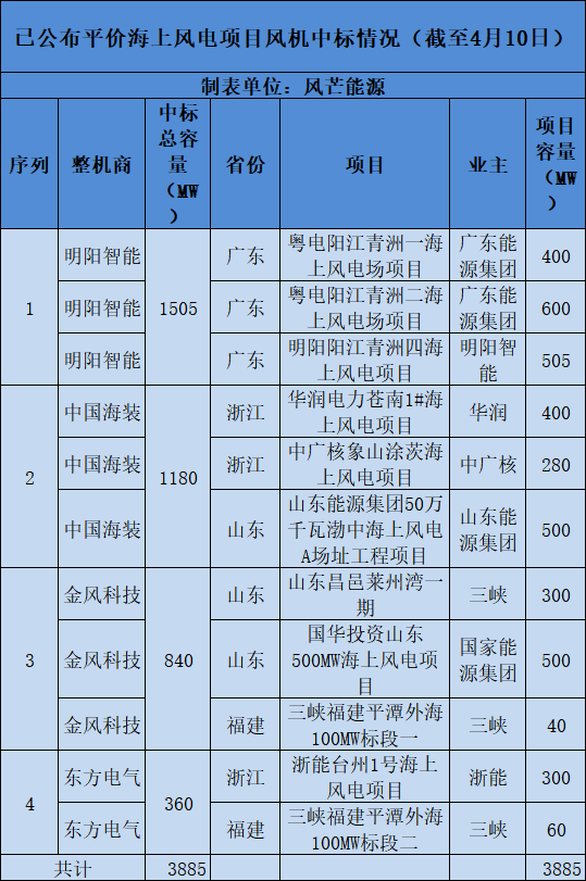 風(fēng)芒能源根據(jù)公開信息不完全統(tǒng)計(jì),截至目前,已有3.885GW平價(jià)海上風(fēng)電機(jī)組中標(biāo)。其中,拿標(biāo)超1GW的有明陽智能、中國海裝2家整機(jī)商。明陽智能拿標(biāo)最多,都集中在廣東地區(qū)。