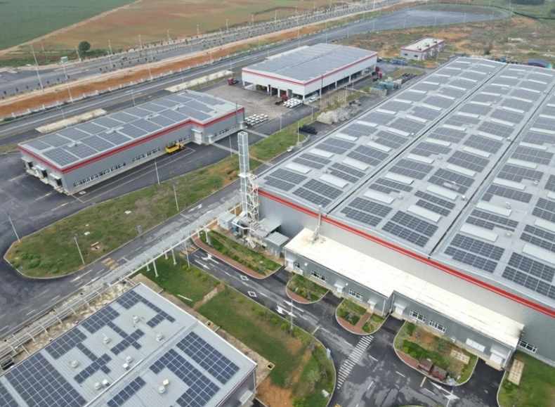 該項目在廠房規劃設計階段提前規劃安裝光伏系統,在廠房建設階段即同步實施光伏部分工程,最大程度上減少光伏建設過程對廠區既定生產的影響。項目安裝容量9.4MW,主要利用解放青島整車事業部柳州廠新建生產廠房屋頂及停車棚,建設分布式光伏電站及光伏車棚,實現“自發自用,余電上網”,并且自發自用比例達95%以上,為柳州廠提供綜合性的綠色能源解決方案。未來25年運營期內預計總發電量約為21229.9萬千瓦時,年平均發電量849萬千瓦時,節約標準煤用量8.49萬噸,減少硫化物排放約6369噸、減少氮化物排放約3185噸、減少碳化物排放21.17萬噸,經濟及社會效益顯著。