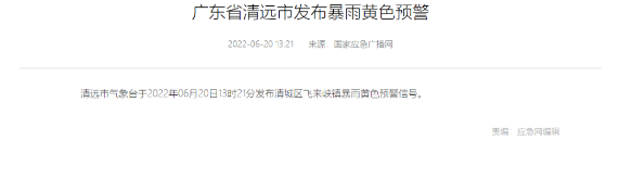 據(jù)悉,廣東省清遠(yuǎn)市今天是暴雨黃色預(yù)警!