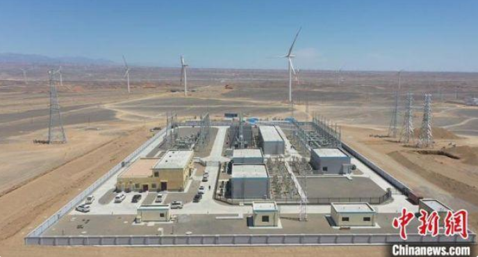 圖為新疆十三間房220千伏國投東溝風(fēng)電匯集站全景圖。 馮洋 攝