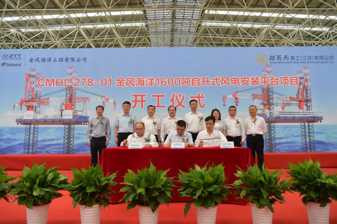 8月18日,金風海洋工程有限公司1600噸風電安裝平臺在江蘇南通舉辦開工儀式。南通市副市長凌屹,陽江市副市長劉德偉,中天科技集團董事長薛濟萍,招商局集團副總經理李百安,中國船級社總裁孫峰,金風科技副總裁李飛,三峽集團、國家電投集團、中廣核新能源公司客戶代表出席儀式。