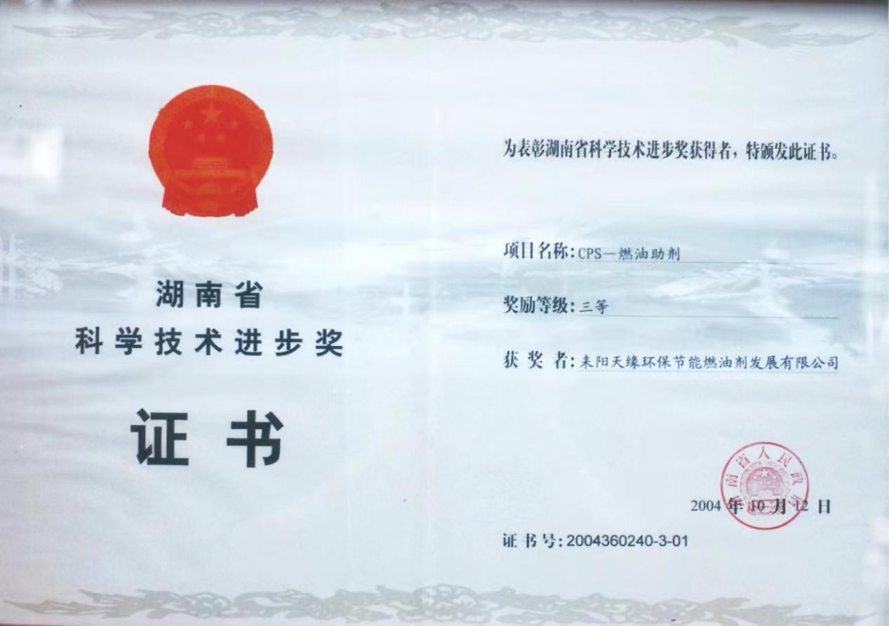 CPS-燃油助劑發明和創造了低碳石油,解決了常規石油尾氣排放問題,開了低碳石油技術的歷史先河,從根本上可以解決因石油尾氣排放因素所造成的空氣污染,是治理霧霾、緩解氣候變化現象的一項最直接、最有效的技術,是發展低碳經濟、實行節能減排國家規劃綱要,是維護中華民族長遠利益的必然要求。技術于2003年9月9日通過省科技成果鑒定,該項技術的成功出現,為我國稠油加工多功能高效助劑領域的空白增添了一筆色彩,該技術在國內燃油助劑研究領域處于領先水平。同年12月又通過了省高科技產品(項目)認定,榮獲2003年省新技術新產品創新金獎,2004年衡陽市科技進步一等獎,省科技進步三等獎。CPS-燃油助劑項目更是被授予“省科技成果重點推廣計劃項目”。2011年10月21日該技術再次通過了國家科技成果鑒定。2016年5月15日完成科學技術評價,中高科評字[2016]第003號,2022年8月列入“科技成果轉化重點項目”。該項目技術經過專家多次的評審分析和可行性研究,技術成熟,產品市場潛力巨大,經濟社會效益明顯,是一項節能減排的重大科技成果項目。它發明和創造了清潔低碳石油,為人類造福,還人類一個美好的清新自然的生活環境,是實現低碳石油應用最有效的一項科學技術。