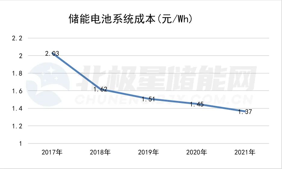出口規(guī)模增加的背后,是技術(shù)的層層突破。而技術(shù)創(chuàng)新、規(guī)模經(jīng)濟(jì)、制造經(jīng)驗(yàn)等因素的協(xié)同作用下,又進(jìn)一步推進(jìn)我國鋰電池行業(yè)規(guī)模加大、成本快速下降。儲(chǔ)能電池成本也為企業(yè)帶來出口優(yōu)勢(shì)。以戶用儲(chǔ)能代表企業(yè)派能科技為例,數(shù)據(jù)顯示其儲(chǔ)能電池系統(tǒng)單價(jià)一直持續(xù)下降,從2017年的2.03元/Wh,2021年降到了1.37元/Wh。