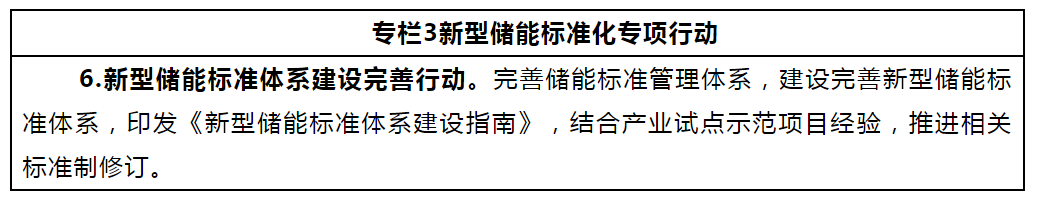 結合新型儲能技術創新和應用場景拓展,及時開展相關標準制修訂,全面推動各類新型儲能技術研發、示范應用和標準制定協同發展。