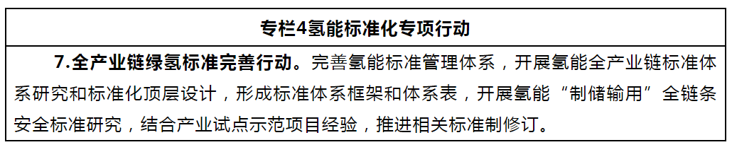 重點圍繞可再生能源制氫、電氫耦合、燃料電池及系統等領域,增加標準有效供給。建立健全氫能質量、氫能檢測評價等基礎標準。