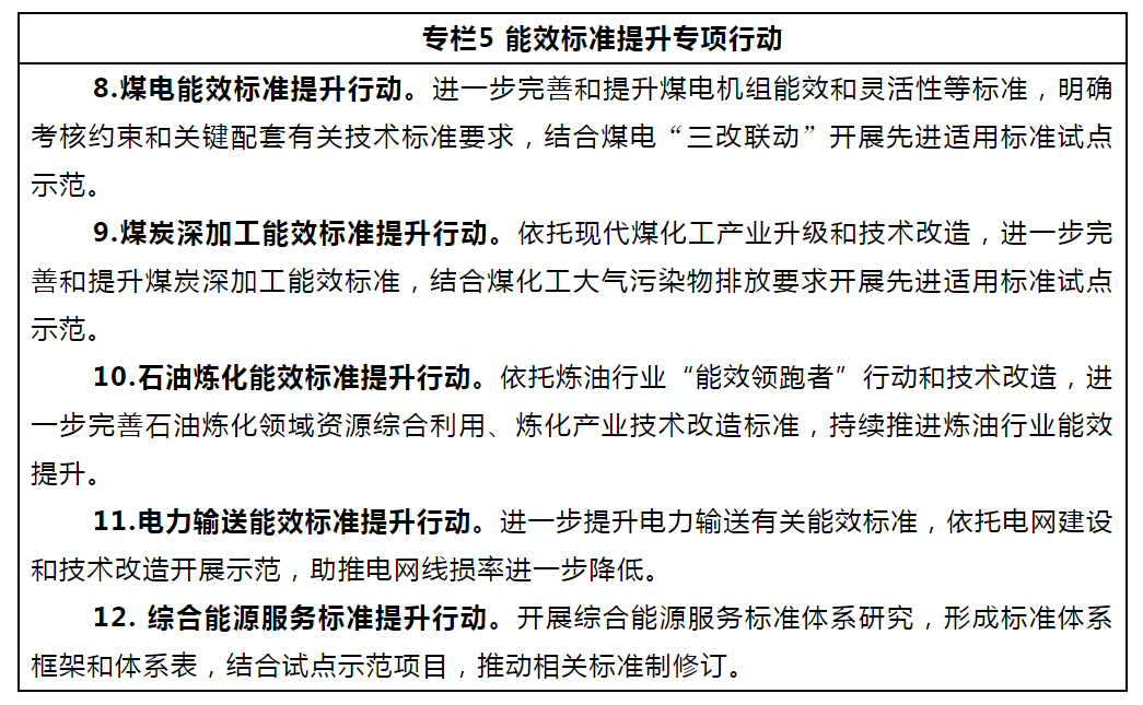 ——修訂一批常規能源生產轉化和輸送利用能效相關標準,提升標準要求和水平,助推和規范資源綜合利用、能效提升。