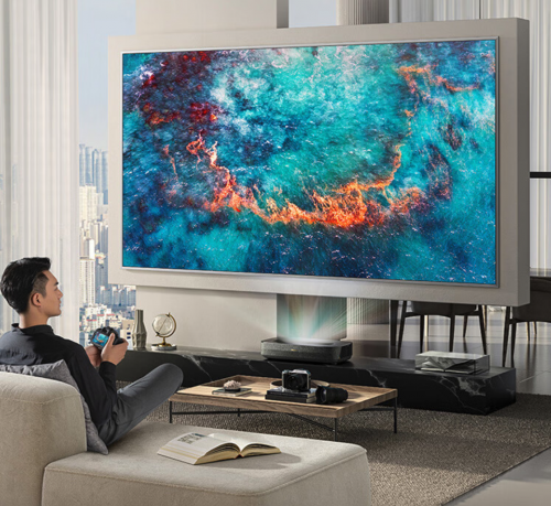 上半年中國(guó)彩電整體規(guī)模繼續(xù)下行,但激光電視所在的75吋+高端大屏電視市場(chǎng)逆勢(shì)擴(kuò)容,銷售額市占率達(dá)到35.91%,同比增長(zhǎng)13.92個(gè)百分點(diǎn),預(yù)計(jì)以激光顯示、8K為代表的高端產(chǎn)品全年零售量增幅將達(dá)到100%。