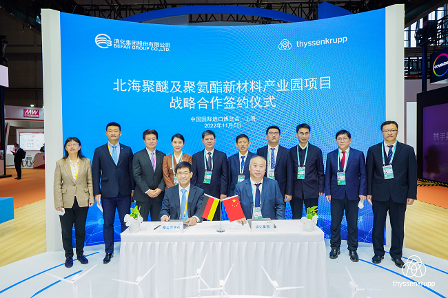 11月5日,蒂森克虜伯在第五屆中國國際進口博覽會開展首日上午,與濱化集團股份有限公司簽署戰(zhàn)略合作備忘錄,將圍繞濱州北海聚醚及聚氨酯新材料產(chǎn)業(yè)園開展全方位戰(zhàn)略合作。雙方自2001年來建立的合作伙伴關(guān)系得到了進一步深化。蒂森克虜伯大中華區(qū)首席執(zhí)行官高巖博士與濱化集團股份有限公司總裁任元濱參加了簽字儀式。濱州市委常委、常務(wù)副市長張偉等領(lǐng)導(dǎo)參加活動并見證簽約。