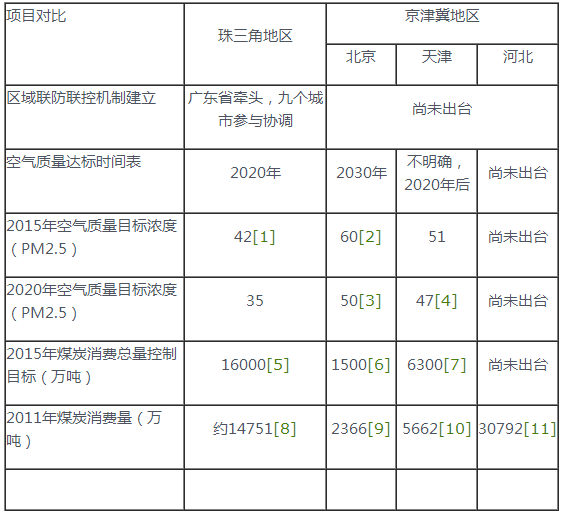 珠三角地區與京津冀地區空氣污染治理行動對比