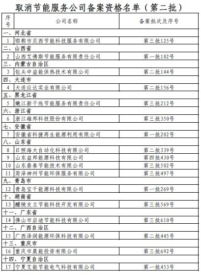 根據《財政部國家發展改革委關于印發<合同能源管理財政獎勵資金管理暫行辦法>的通知》(財建[2010]249號)有關規定,現將造假節能服務公司名單予以公告,取消其備案資格,并收回這些節能服務公司所有合同能源管理項目獎勵資金。