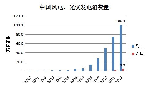 在這樣的背景下,核能、水能、風能、光伏等能源的利用將會得到一定程度的“激勵”,從而“頂上”燃氣發電項目的空缺。尤其是風能、光伏等可再生能源具有分布廣泛、建設工期短等優勢,相關項目的建設在短期內或將迎來一個小高潮,風電、光伏設備制造行業產能過剩的窘境或將得到一定程度的改善。下圖是我國風電、光伏發電消費量及裝機情況。