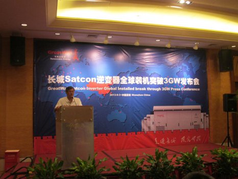 2013年9月3日,深圳中電長城能源有限公司(簡稱長城能源)在深圳召開新聞發布會,正式宣布“長城Satcon逆變器全球裝機量突破3GW”。這意味著長城Satcon逆變器全球裝機能力的大幅提高,以及品牌、渠道、市場拓展等綜合能力的提升,同時也意味著一個新的太陽能逆變器領導廠商正在崛起。