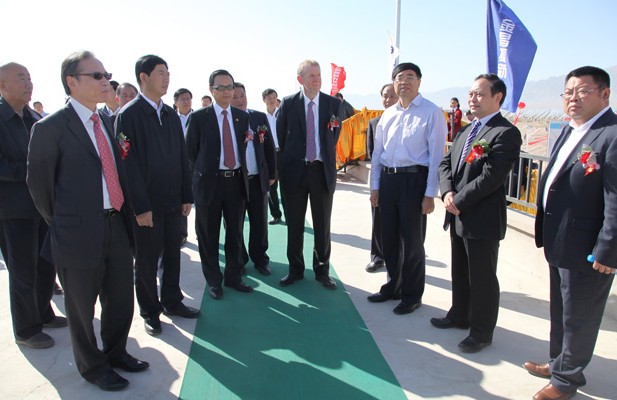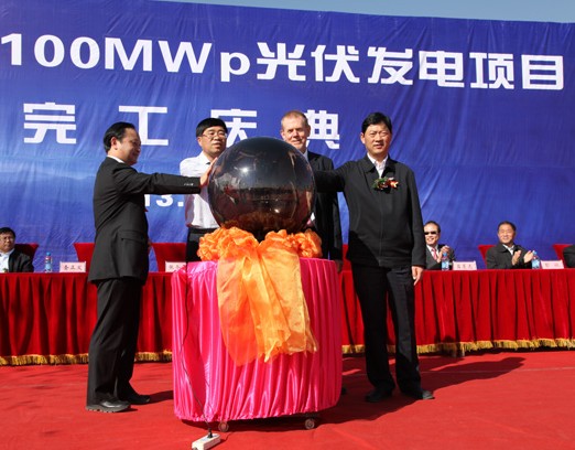 金昌市委書記張令平,市委副書記、市長張應華,中電集團首席營運官李道悟,振發新能源集團董事長查正發出席完工慶典儀式,并共同觸摸水晶球為項目完工剪彩。