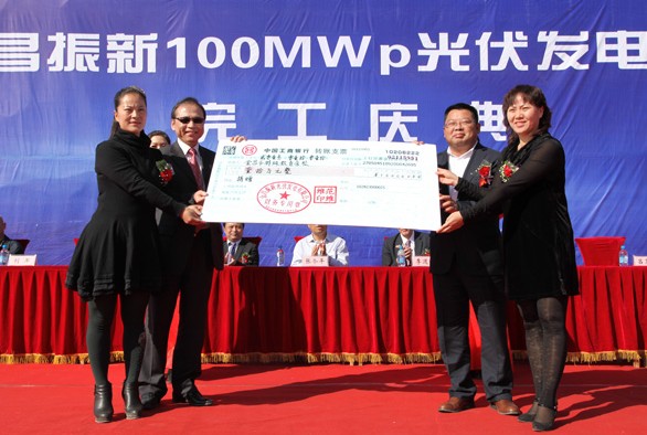王春江代表市委、市人大、市政府、市政協對金昌振新100兆瓦光伏發電項目順利完工表示熱烈祝賀。他說,光伏產業是國家重點支持發展的戰略性新興產業,也是我們調整產業結構、推動轉型跨越的著力點。金昌市發展光電產業條件得天獨厚,開發潛力巨大,可開發光電規模2000萬千瓦;境內電網構架完善,接入條件便利;區域交通便捷,可用土地廣闊;高載能產業集中,就地消納能力強,特別是太陽能真空鍍膜及平板集熱器等新能源裝備制造業有良好基礎。金昌振新100兆瓦光伏發電項目是金昌市新能源產業發展的重點招商引資項目之一,該項目在工程建設過程中,始終堅持“以人為本、安全為先、管理規范”的理念,全面實現了工程安全、質量、進度和投資的有序可控,業已成為金昌市招商引資項目的成功典范,對促進全市光伏產業發展具有重要意義。