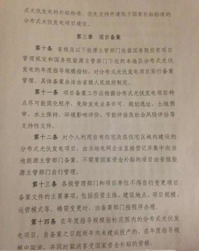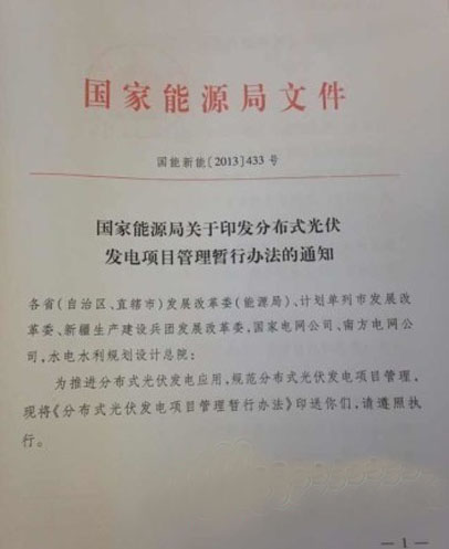 • 能源局發布《關于分布式光伏發電項目管理暫行辦法的通知》