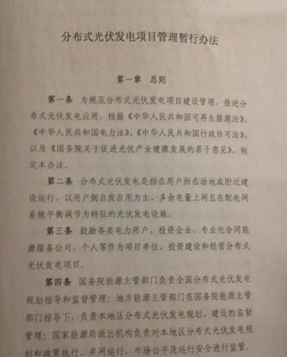 能源局發布《關于分布式光伏發電項目管理暫行辦法的通知》