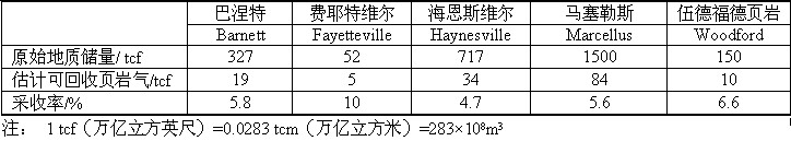 常規(guī)天然氣采收率一般為60%,原油一次采油為5%~15%,三次采油可達60%。非常規(guī)儲層中的致密氣、致密油和頁巖氣的采收率都很低的。表中未美國油氣雜志報道的數(shù)據(jù),可以看出頁巖氣采收率在4.7%~10%之間,是很低的。