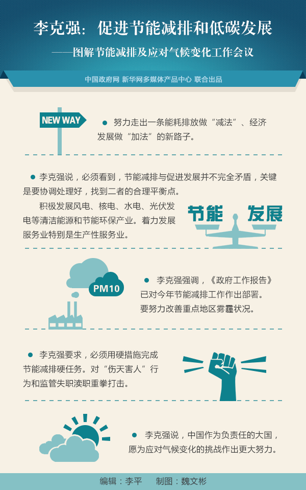 日前,中共中央政治局常委、國務(wù)院總理李克強(qiáng)主持召開節(jié)能減排及應(yīng)對氣候變化工作會議,推動落實(shí)《政府工作報(bào)告》,促進(jìn)節(jié)能減排和低碳發(fā)展,研究應(yīng)對氣候變化相關(guān)工作。