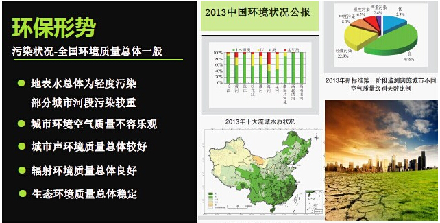 從2012年環保產業調研報告可以看出,環保產業形勢卻呈現出了逐漸增大的發展勢頭,2012年環保產業年營業收入達到3萬億人民幣,到2015年預計將突破4.5萬億;其中,由于國家極力促進環境服務業的發展,節能服務業總產值有望突破3000億元。伴隨著公眾對環境感知的提升,政府對環境的重視逐漸增加,政府對產業內的關注包括《氣十條》、《水十條》也都在促進著目前的環保形式,預計將拉動投資超過萬億。