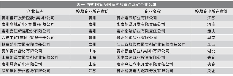 如今,除了盤江煤電、水城礦業(yè)、六枝工礦、林東礦業(yè)四大省屬國有煤企,貴州的大型煤礦開采主體基本都是省外來客。這從貴州省安監(jiān)局公布的國有及國有控股重點煤礦企業(yè)名單便可見一斑(見表一)。
