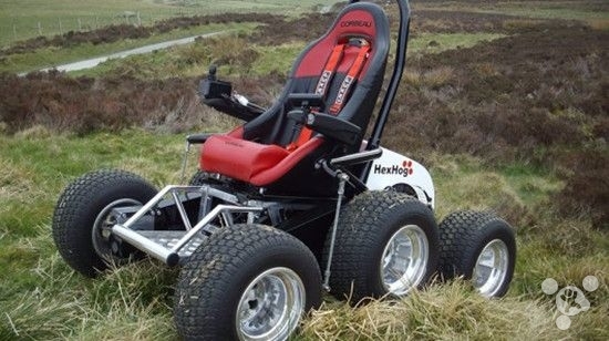 經(jīng)過(guò)五年的研發(fā)與崎嶇的山路測(cè)試,HexHog終于合法歸入ATV(全地形車(chē))行列,打破了傳統(tǒng)電動(dòng)輪椅概念。Pierce稱:“雖然不能把HexHog開(kāi)進(jìn)超市,但你完全可以開(kāi)著它跨越荒野、農(nóng)田甚至是泥炭沼澤。”如果購(gòu)買(mǎi)了額外的設(shè)備,你可以開(kāi)著它像汽車(chē)一樣在英國(guó)公路馳騁,當(dāng)然前提是你有一個(gè)標(biāo)準(zhǔn)的汽車(chē)執(zhí)照。