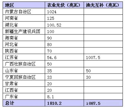 根據統計,截至2013年底,國家已審批通過的農業光伏項目和漁光互補項目共計2897MW(包含13省和新疆建設兵團,見下表)。其中,農業光伏項目1810MW,漁光互補項目1088MW。