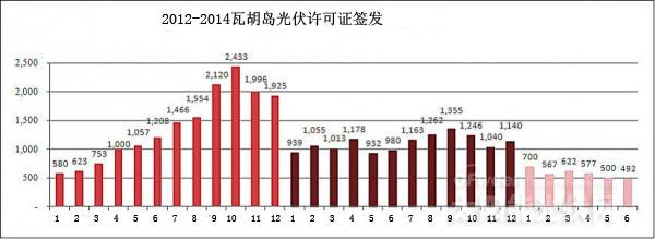 上個月標志著第十四個月光伏許可證發布的數量年度同期增長率連續下降,隨著這一趨勢在短期內扭轉的希望不大。許多大部分銷售收入依靠光伏的公司將會發現他們處在日益嚴峻的困境,2014年第三和第四季度的收入將比上半年要少很多。至少在短期內,很難扭轉這種痛苦的減少。