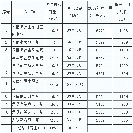 表1:2012年呼倫貝爾電網(wǎng)投入營運的11個風(fēng)電場狀況