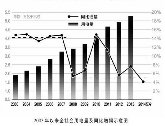 本報(bào)記者分析認(rèn)為,從2008年國(guó)際金融危機(jī)以來(lái),如果排除強(qiáng)刺激因素,我國(guó)經(jīng)濟(jì)發(fā)展對(duì)應(yīng)的潛在用電量增速明顯下了一個(gè)臺(tái)階。2010年和2011年的高增速無(wú)疑是強(qiáng)刺激的結(jié)果。到2012年“藥效”消失,當(dāng)年增速就一下子失速到5.5%,向?qū)嶋H用電量增速收斂。2013年2月用電量增幅甚至降到2%的低點(diǎn)。為消化前期強(qiáng)刺激政策,避免經(jīng)濟(jì)運(yùn)行出現(xiàn)重大波動(dòng),政府采取了必要的穩(wěn)增長(zhǎng)措施,導(dǎo)致2013年全年用電量增幅恢復(fù)到7.5%的中高速。今年以來(lái),我國(guó)經(jīng)濟(jì)下行壓力加大。