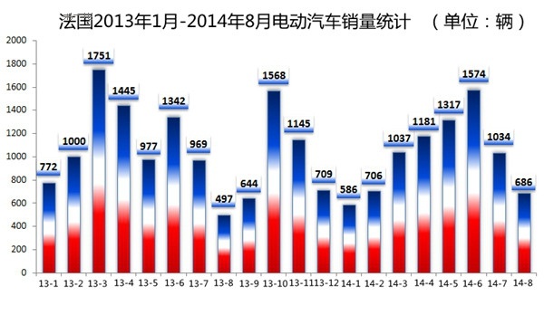 7月和8月,法國新注冊電動汽車數量為1720輛,而在2013年同期為1466輛,電動乘用車的銷量為1109輛,電動輕型運輸車的銷量為611輛,今年前八個月,兩種車型的累計銷量分別為5415輛和2710輛,總計8125輛。這表明法國的電動汽車銷量較挪威落后50%,但領先于德國,在歐洲可謂第二大電動汽車市場。