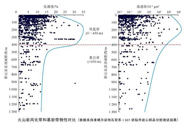 火山巖儲集層的分布規律與優質火山巖相帶、風化淋濾帶、有利成巖部位密切相關: