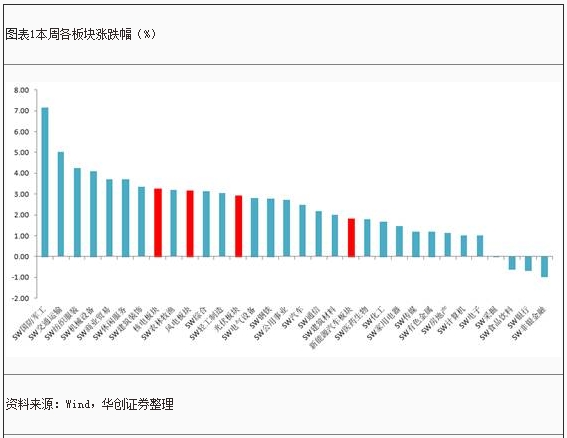 本周核電、風電、光伏板塊漲幅居前。我們認為分布式光伏調整政策落地后仍不斷有利好出臺,分布式行業商業模式將加速形成,板塊趨勢性行情揭開序幕,繼續強烈推薦。