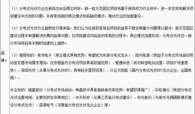 二、行業新聞:分布式光伏示范區再出政策,行業趨勢性行情來臨