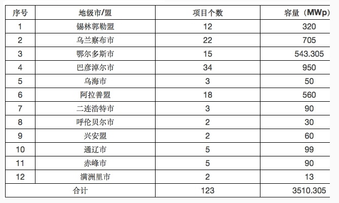 2013年11月7日,內蒙古自治區(qū)發(fā)展和改革委員會下發(fā)《關于我區(qū)太陽能發(fā)電項目試行盟市備案管理的通知》,文件提出當時已經核準或者拿到路條的項目等同備案,這些項目的分布情況如下表所示。
