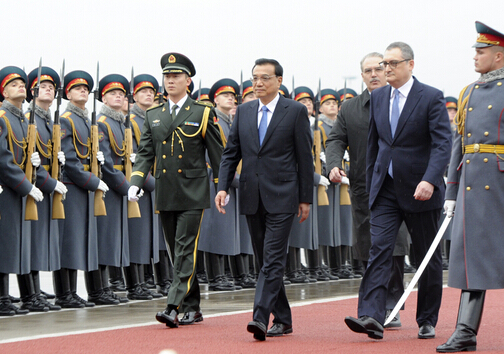 圖:李克強于12日下午抵達莫斯科開始對俄羅斯進行正式訪問,俄方在機場舉行隆重閱兵儀式/中新社