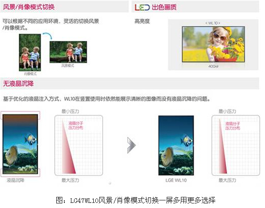 作為全球商用顯示領域領導品牌LG電子,秉承專業(yè)、創(chuàng)新的品牌理念,憑借對行業(yè)應用的充分了解和深度洞察,LG47WL10融合了全高清、高亮度、綠色環(huán)保、配備溫度傳感器和ISM殘像防止功能、風景/肖像模式切換自如,兼具使用壽命長、呈現(xiàn)效果穩(wěn)定、維護費用低、視覺效果好等諸多優(yōu)點,全面迎合市場及客戶對環(huán)保節(jié)能、降低使用成本和提高使用便利性的需求。未來,LG必將推出更多更好的商用顯示產(chǎn)品及配套解決方案,為諸多行業(yè)提供完美的顯示解決方案。
