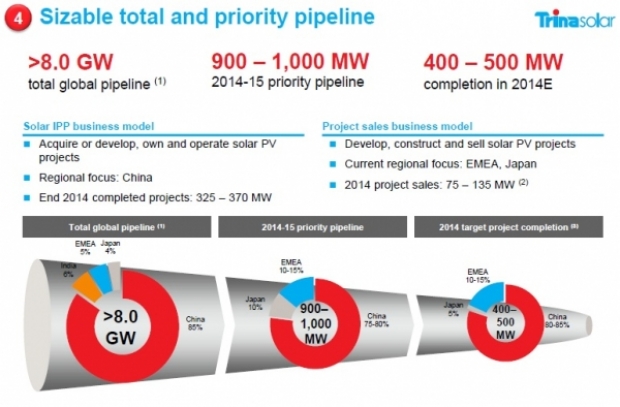該公司指出,總計7GW在中國,中國各地框架協議超過6GW,2014和2015年優先項目儲備800MW。