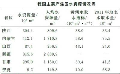 中國人均水資源量僅為世界平均水平的1/4,且全國分布極不均勻。中西部地區屬于缺水地區,尤其是內蒙古河套地區大量抽取黃河水,用水量已超過黃河的承載能力(表)。煤制天然氣項目耗水量巨大,據已開展前期工作的示范項目可研成果,單位產品新鮮水消耗量大概在7t/1000m3,年產40×108m3的項目每年耗水量多達2800×104。