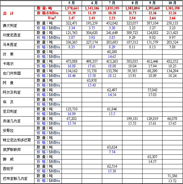本文將中國海關(guān)的天然氣進口數(shù)據(jù)進行匯總并整理,以供讀者參考。從2014年6月起,國際原油價格高位下跌對中國進口天然氣價格沒有影響,其原因是亞洲地區(qū)包括中國是按照“照付不議”合同付款方式,油價有影響但不大。