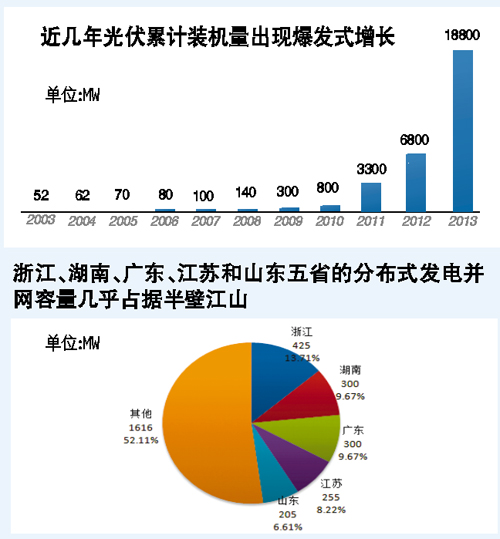 按國家能源局年初的計劃,2014年要完成14GW光伏裝機目標。但某大型光伏上市公司總裁向廣州日報記者透露:“今年能夠有7GW并網就不錯了。”國家發改委能源研究所研究員王斯成也表示,按現有的政策,要實現年初出臺的這個目標還是有相當的難度,隨著光伏電站額度的擴大,估計年底裝機總量能達到差不多10GW,其中分布式光伏達到4GW還是有可能的。