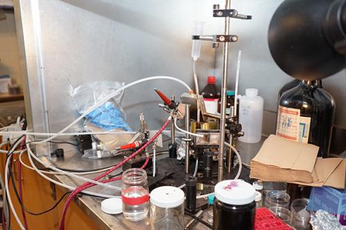 Kramer采用的噴涂LD設(shè)備不僅價(jià)格低廉,而且很多部件都是現(xiàn)成的。噴嘴用的是鋼鐵廠里冷卻鋼鐵用的噴水嘴,噴槍是從藝術(shù)品商店里買來的。