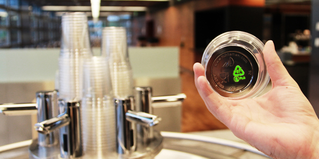 在ETH蘇黎世食堂用聚乳酸做成的塑料杯©BoCheng/ETHZurich