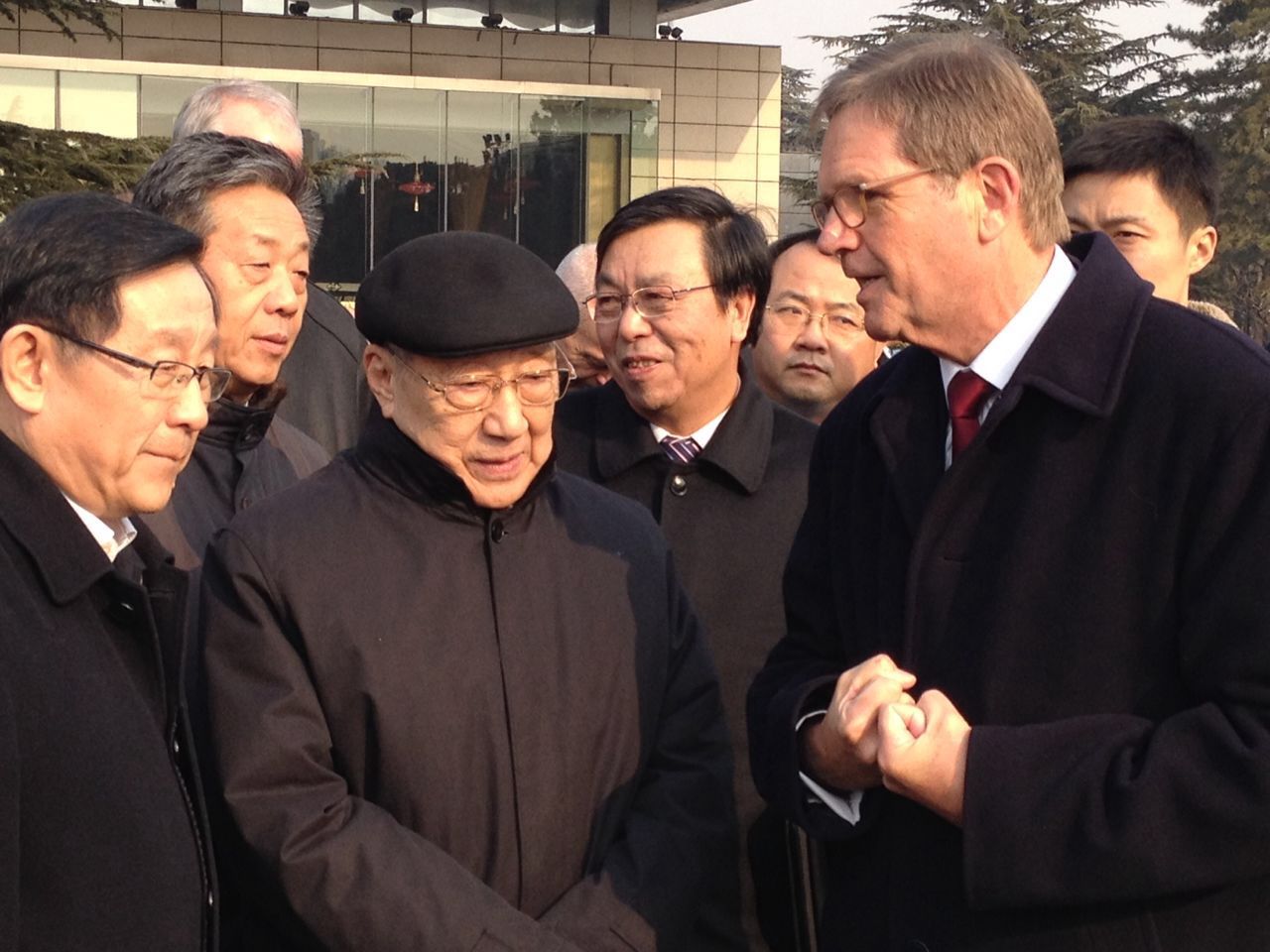 原國(guó)務(wù)院夫總理李嵐清在展覽現(xiàn)場(chǎng)與大眾汽車CEO海茲曼親切交談