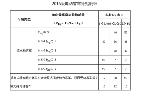 2013年版客車補(bǔ)貼政策是按照車身長(zhǎng)度進(jìn)行補(bǔ)貼:客車車身6≤L<8補(bǔ)30萬(wàn),8≤L<10補(bǔ)40萬(wàn),L≥10補(bǔ)50萬(wàn),這種補(bǔ)貼方式只以車身長(zhǎng)度為標(biāo)尺,忽視了電動(dòng)客車的實(shí)用性,也給整車企業(yè)不好的政策引導(dǎo),使部分整車企業(yè)生產(chǎn)了一些只為拿國(guó)家補(bǔ)貼,沒有實(shí)用性的車型,不利于國(guó)家電動(dòng)客車技術(shù)進(jìn)步,因此本次2016版補(bǔ)貼標(biāo)準(zhǔn),為了改變這一現(xiàn)狀,提出了“單位載質(zhì)量能量消耗量”的概念,使客車補(bǔ)貼標(biāo)準(zhǔn)更加注重整車動(dòng)力性、實(shí)用性,并將補(bǔ)貼標(biāo)準(zhǔn)進(jìn)一步細(xì)化,這一改變說(shuō)明國(guó)家是在正確的方向上對(duì)國(guó)內(nèi)新能源客車生產(chǎn)企業(yè)進(jìn)行引導(dǎo),意義十分重大。