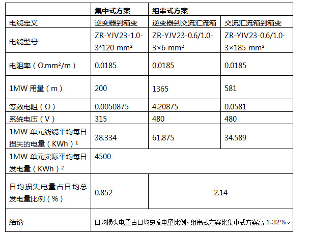 注1:按照該電站實(shí)際平均每日發(fā)電量曲線,獲取交流側(cè)電流曲線,結(jié)合線纜參數(shù),計(jì)算出1MW單元線纜平均每日損失的電量。