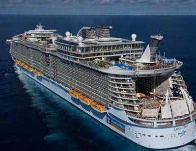 皇家加勒比國際的海洋綠洲于2009年面世,是世界上最大的游輪,總重量是泰坦尼克號的5倍,長度是美國國會大廈的1.5倍,有16個甲板,可容納6296個游客。