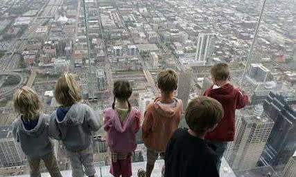 這個位于該大廈103層的平臺于2009年開通,懸浮在1353英尺的高空,四周都是透明的墻、地板和天花板,就像一個透明的盒子。從這里可以將芝加哥的風景一覽無遺,如果膽大的游客敢直接往下看,可以看到芝加哥河。