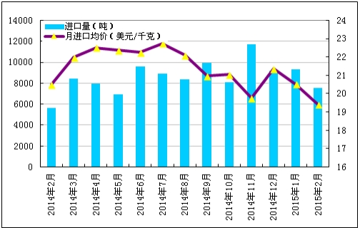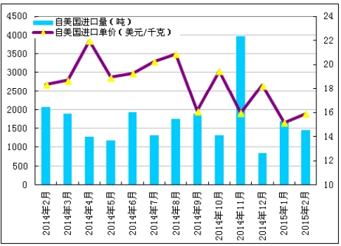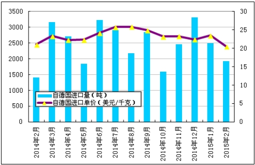 圖1 2014年2月-2015年2月多晶硅進口量及進口均價示意圖數據來源:海關